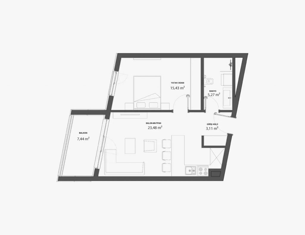 Sierra Yaşamkent’in rahat, ferah ve lüks 1+1 Daireleri sizi bekliyor. 1+1 A Giriş Holü 3,30 m² Salon – Mutfak 23,12 m² Banyo 5,27 m² Yatak Odası 15,96 m² Balkon 7,30 m² Brüt Toplam 61,77 m² 1+1 B Giriş Holü 3,11 m² Salon – Mutfak 23,48 m² Banyo 5,27 m² Yatak Odası 15,43 m² Balkon 7,44 m² Brüt Toplam 64,07 m²